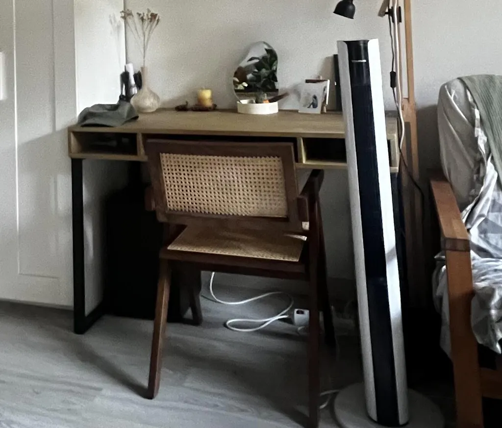 És un escriptori que m’ha convençut del tot. La combinació de fusta amb potes metàl·liques grans li dona un aspecte sòlid i elegant alhora. És ergonòmic, molt còmode per treballar-hi hores, i el tacte de la fusta és espectacular, d’aquells que es noten només posar-hi les mans.