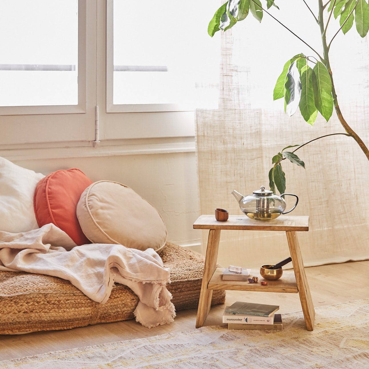 Maille en raphia naturel, lits de 90, 135, 150 et 180 cm149,90 €Prix promotionnel Du 114,90 €Table basse élévatrice Palmira