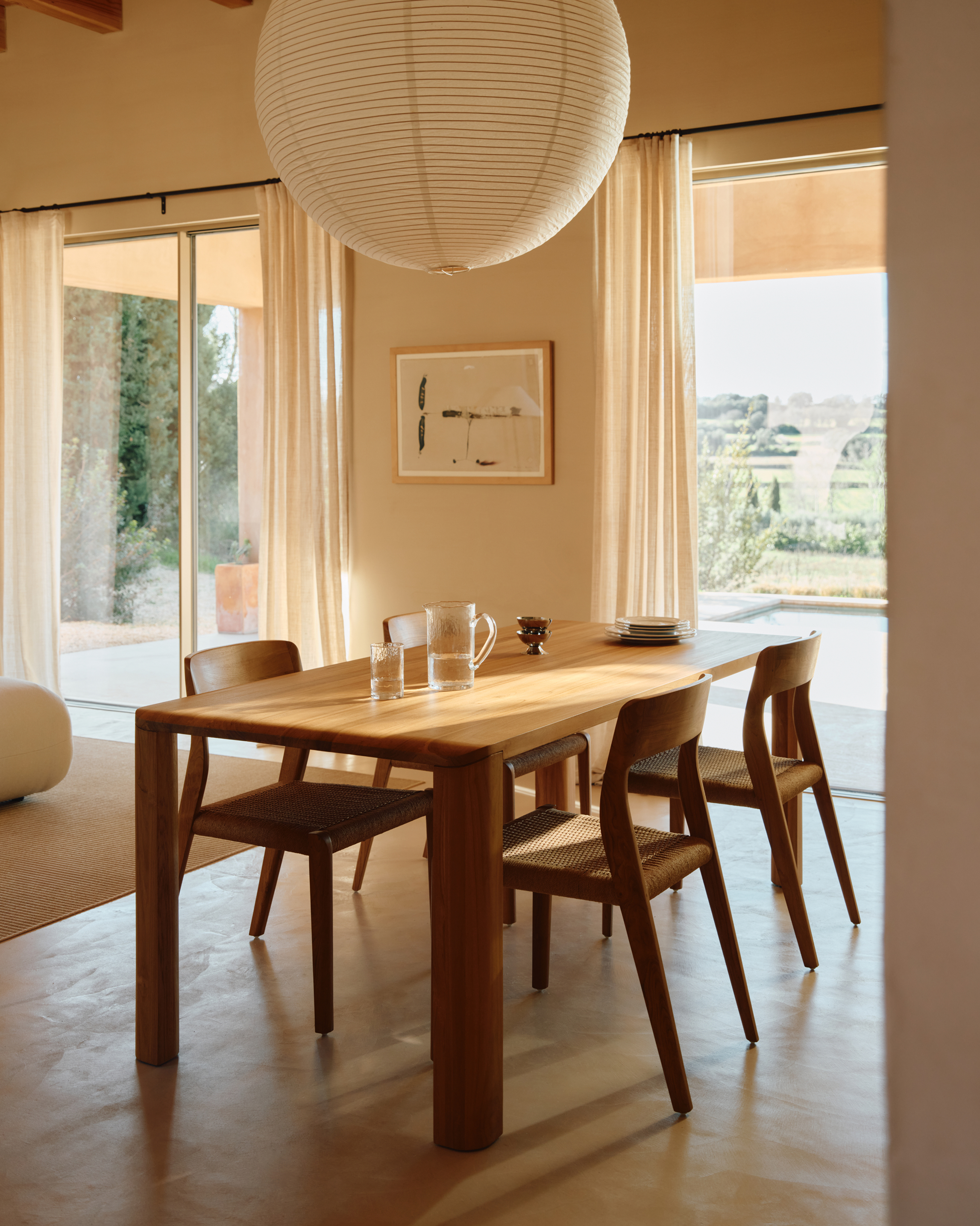 Il tavolo da pranzo Kora riflette la purezza delle forme e la bellezza naturale del legno massello di teak, in un design che unisce solidità e leggerezza visiva.