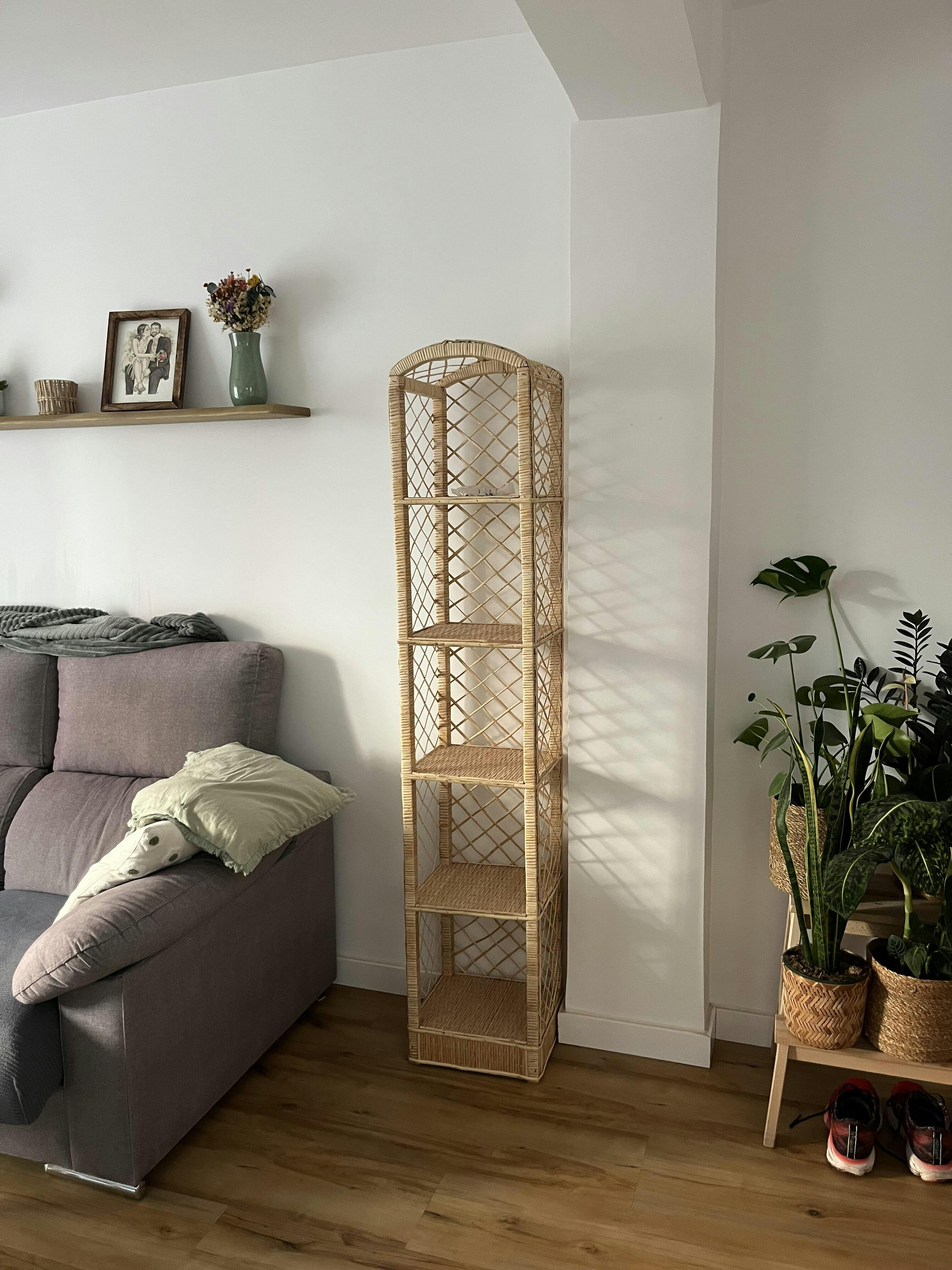 Los muebles hechos con mimbre aportan una frescura inigualable a tus espacios, combinando un diseño atemporal con un encanto natural. La estantería Lea, tejida a mano con mimbre de origen nacional, tiene una dimensión estrecha, adaptándose a todo tipo de espacios y necesidades. Su diseño versátil la convierte en una pieza ideal para cualquier estancia, aportando calidez y autenticidad a tu hogar.