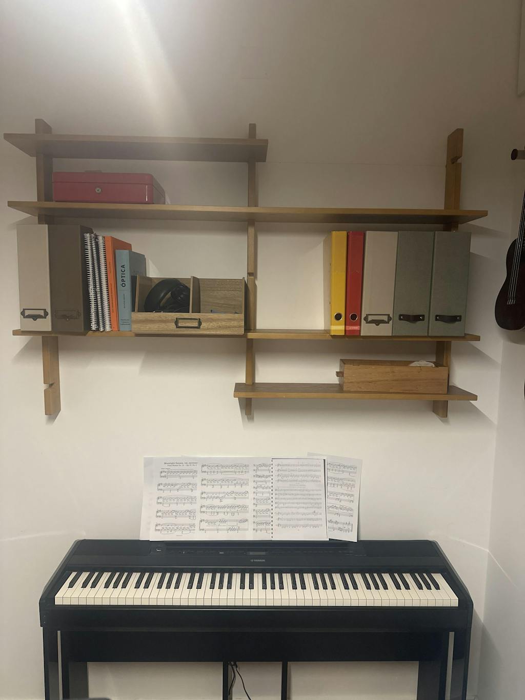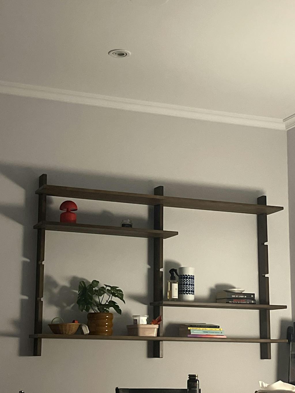 Bom design e madeira sólida e estável, exatamente o que se espera de uma estante de madeira. No entanto, a cor não é bem representada nas imagens do produto. As fotos parecem estar com a cor alterada e muito mais claras, enquanto a estante real é visivelmente mais escura, com um tom esverdeado que corresponde melhor ao nome do que às imagens.