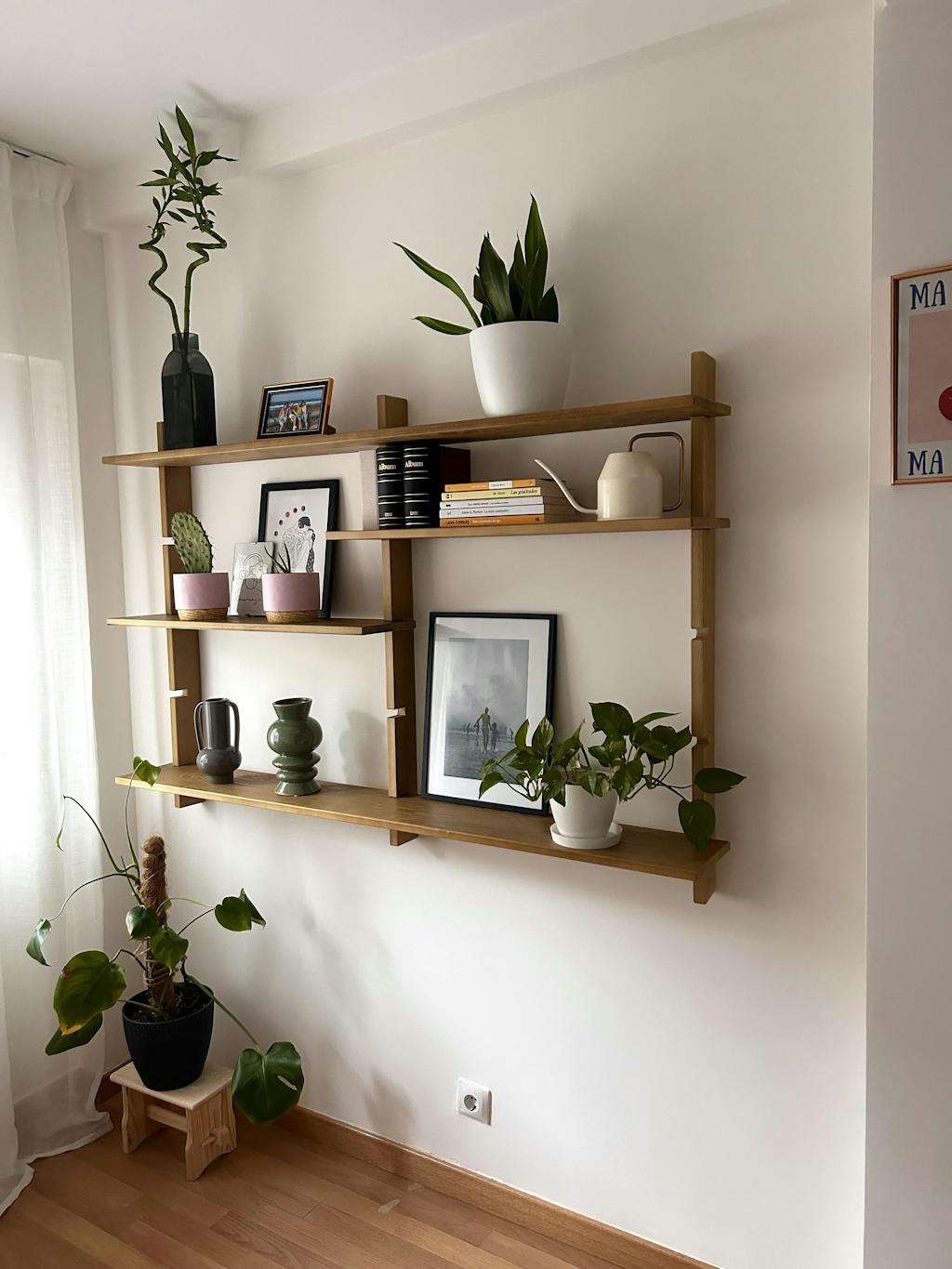 Con su diseño asimétrico, ofrece una amplitud que invita a la creatividad: las baldas pueden disponerse a tu antojo, cambiando de lugar o de nivel según tu estado de ánimo o las necesidades de tu espacio. Esta flexibilidad convierte a la estantería Aloma en una pieza modular realmente inimitable, capaz de adaptarse a ambientes contemporáneos, rústicos o clásicos, siempre aportando un toque de sofisticación y calidez.