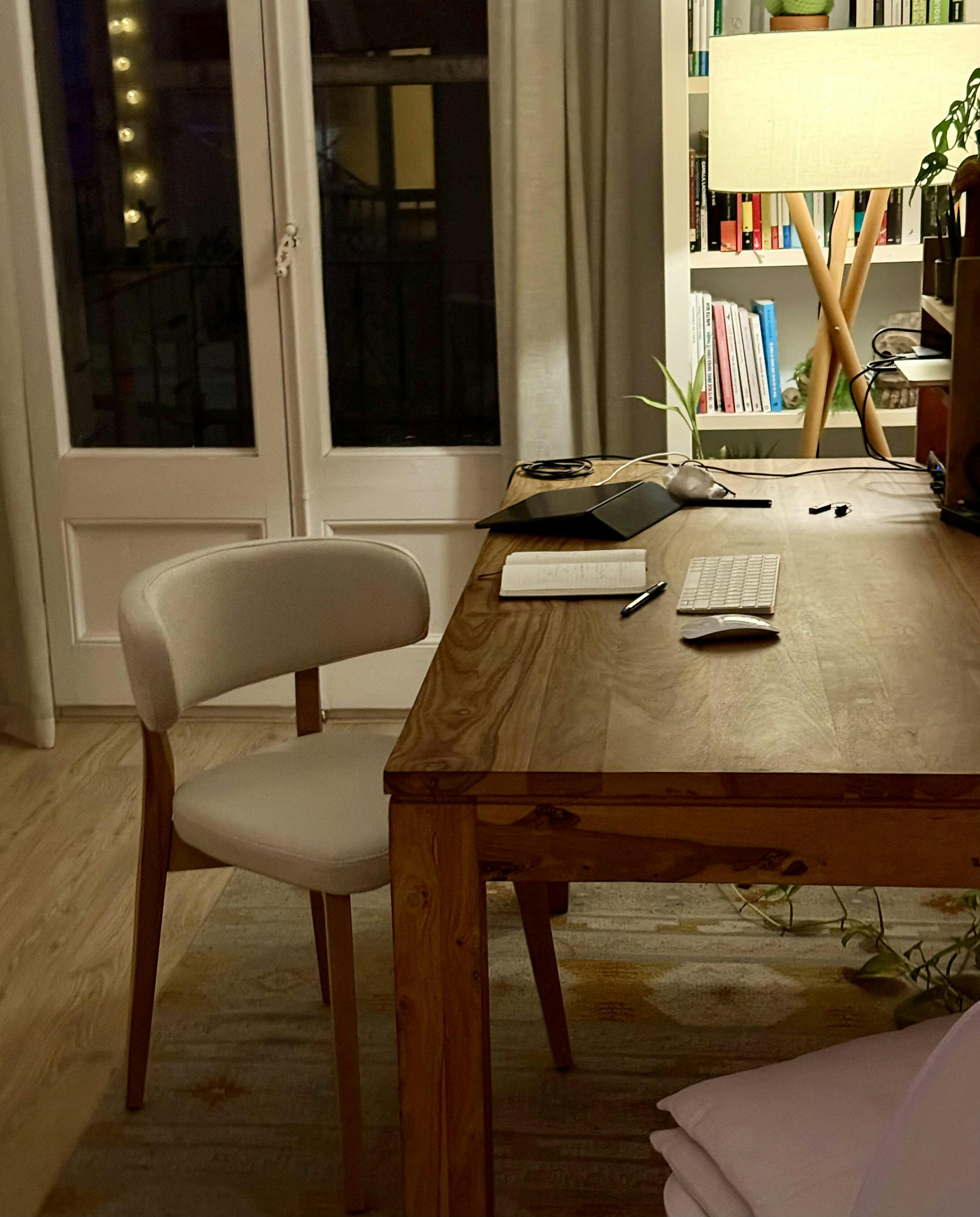 Melia es una silla de formas generosas y proporciones equilibradas, diseñada para habitar espacios con calidez, sencillez y sensibilidad.