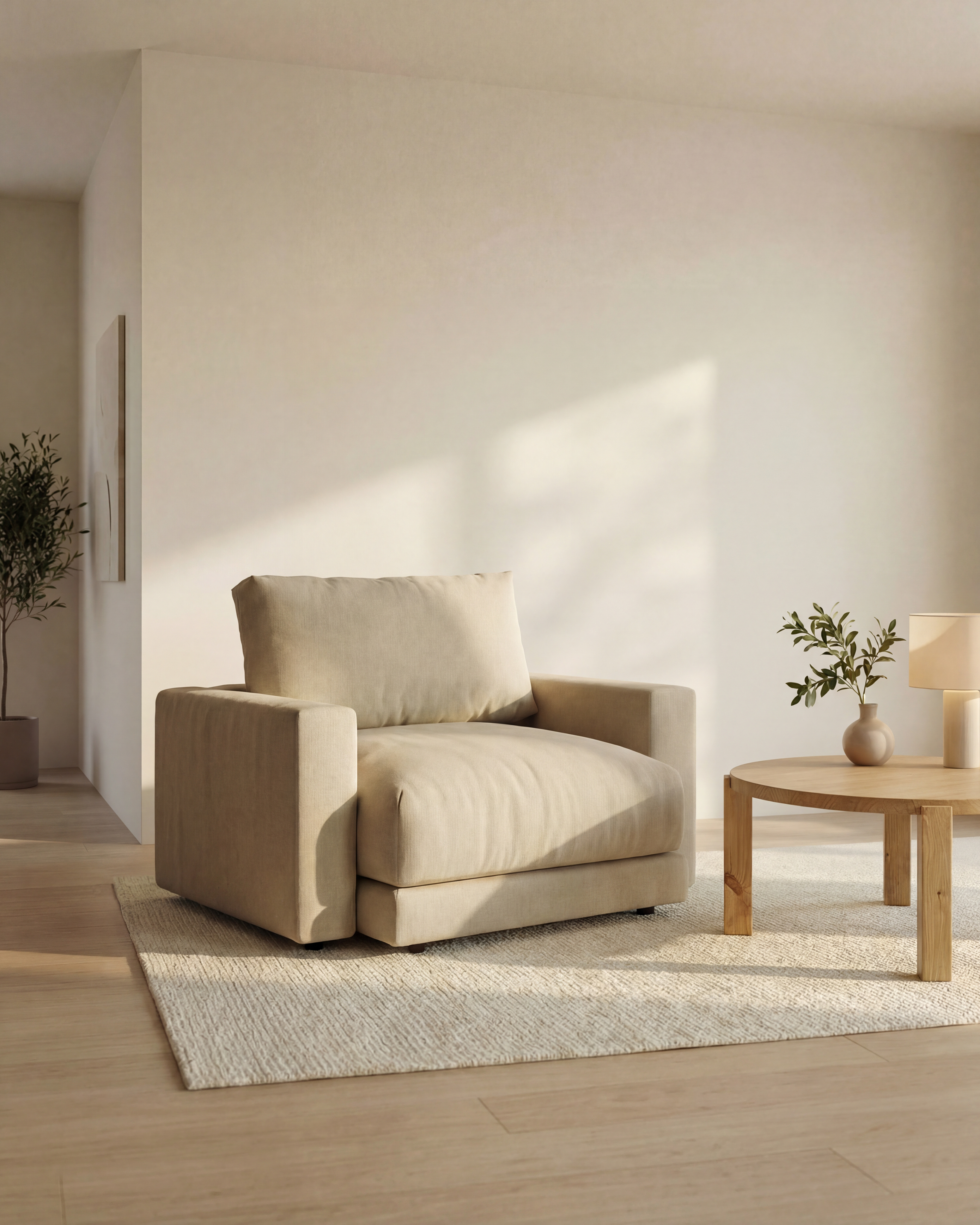 Nimbus es una pieza que equilibra confort y funcionalidad a través de una cuidada selección de materiales. Su textura, envolvente y robusta, invita a detenerse y disfrutar del espacio con calma y coherencia.